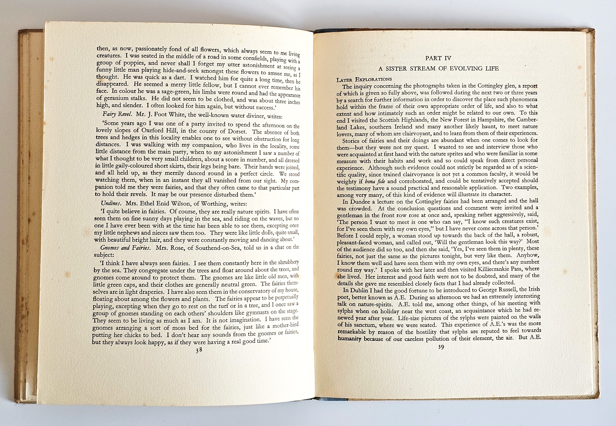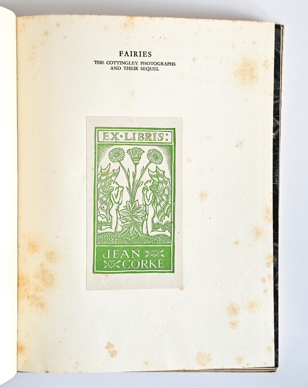 Octavo. Original blue cloth-backed boards, titles to upper board in black. With the 5 famous Cottingley Fairy photographs. Bookplate of Jean Corke to front pastedown and front free endpaper, with ownership name to the latter. Some spotting to endpapers and text throughout, more pronounced to preliminaries and plate leaves, boards a little rubbed, spotted and toned, spine ends lightly worn, cracking to binding at p 26, but pages still holding firm. A good copy.