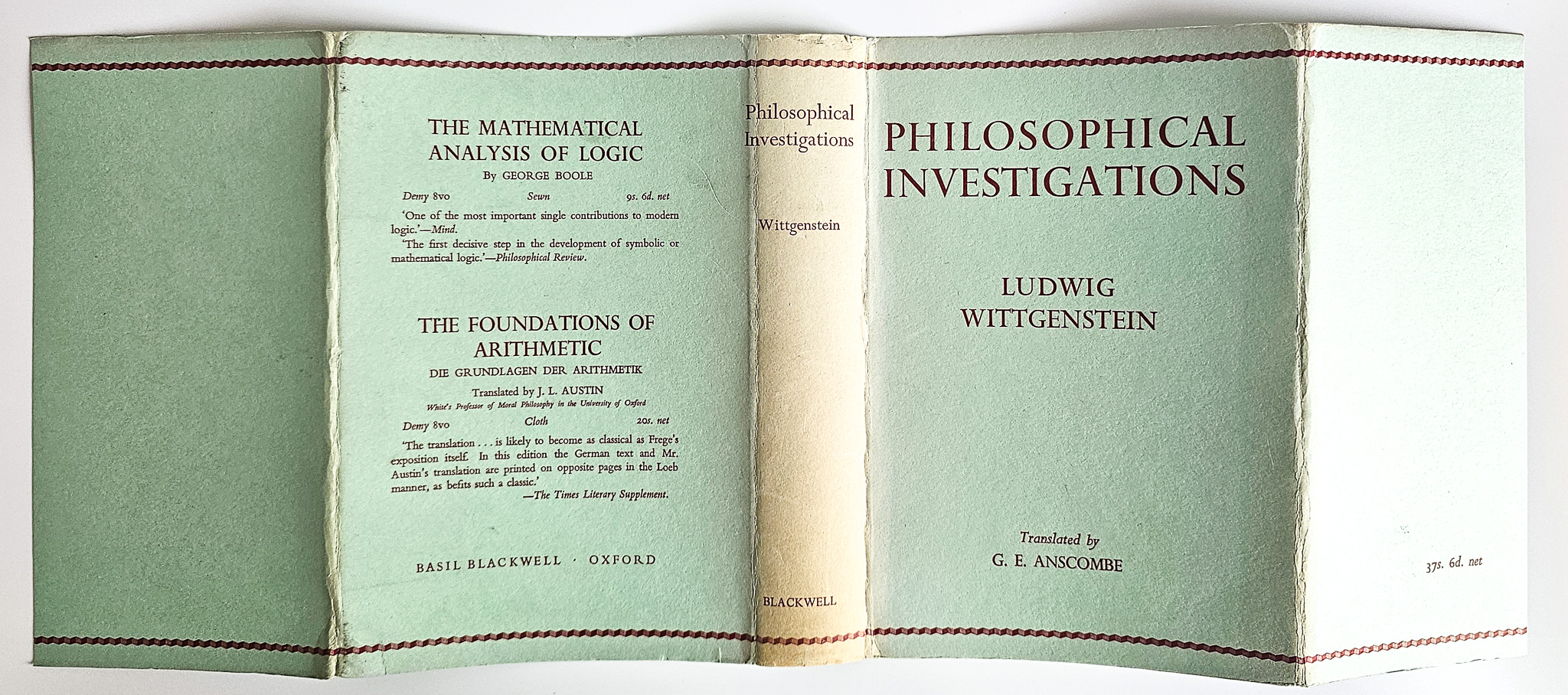 First edition, first impression, of one of the most significant philosophical works of the twentieth century, edited and translated by G. E. M. Anscombe. Published posthumously two years after Wittgenstein’s death, Philosophical Investigations marks his transition from the early logical atomism of Tractatus Logico-Philosophicus to his later philosophy of language and meaning.